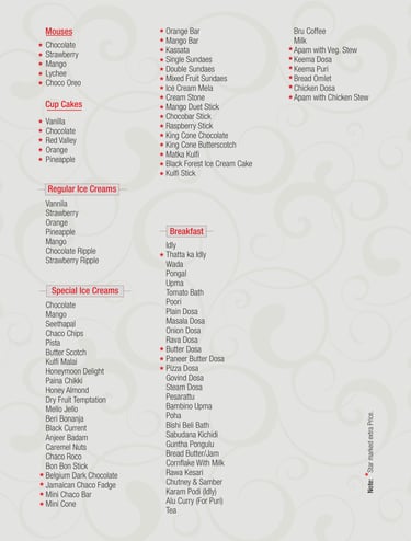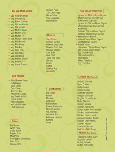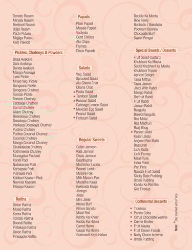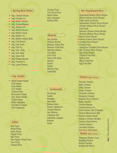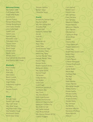 Veg Menu